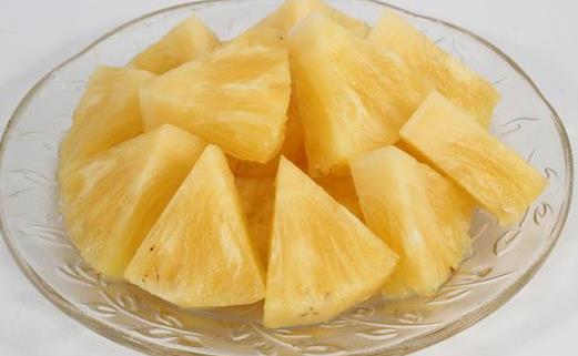 如果为了保持菠萝的生鲜口味,可以把切成片或块的菠萝放在盐水(一般烧菜的咸度)里浸泡30分钟左右,再用凉开水浸洗去咸味,也同样可以达到脱敏的作用。